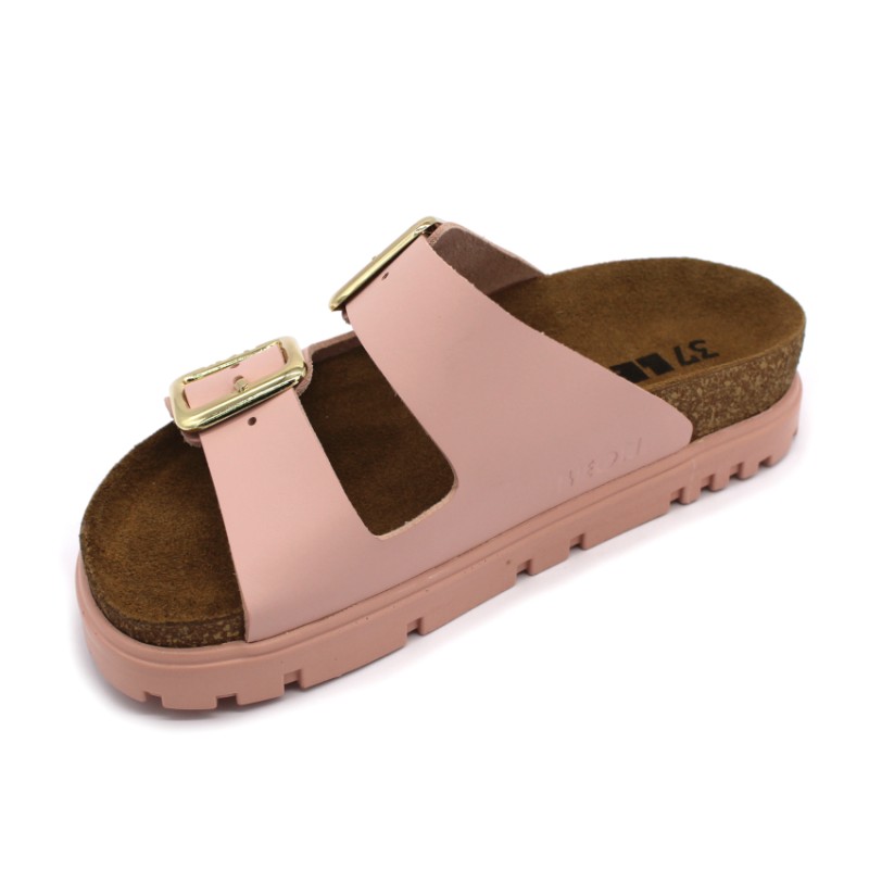 Podeszwa to anatomicznie zaprojektowany korek z miękką zamszową wkładką i dolną częścią z pianki, która dopasowuje się do kształtów stopy użytkownika. Zapewniając nie tylko indywidualne wsparcie, ale także relaksujący masaż, który redukuje zmęczenie.